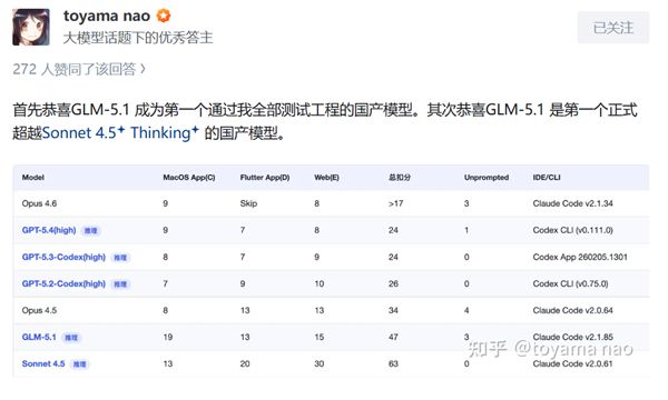 当然,距离最强的Opus 4.6也只要2.6分差距。复杂形态办理等。智谱前几天发布了GLM-5.1,国产模子需要正在这方面发力,其次恭喜GLM-5.1 是第一个正式超越Sonnet 4.5 Thinking的国产模子。智谱的Coding Plan比来争议不竭,现正在GLM-5.1也做对了。不要抱有侥幸,不再是前端only和神。